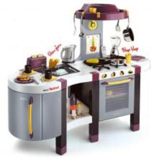 Шикарная детская кухня с возможностью помыть посуду после игрушечного обеда. На этой кухне из крана действительно бежит вода. Это большая игровая кухня, с ней могут играть сразу несколько ребят. Немалая функциональность сделала из игрушки лидера среди всех детских кухонь от компании Smoby. Малыш сможет печь в духовке, жарить на плите, взбивать в миксере, делать гриль и кипятить чайник. В комплект детской кухни включены: холодильник, электронная газовая плита, духовка, гриль-бар, раковина и вытяжной шкаф. Для приготовления еды имеются 40 кухонных принадлежностей: сковородка, кастрюля, ложки, вилки, ножи, яичница, тостер, комбайн, чайник и телефон, чтобы звать гостей на праздничный ужин. На конфорочной плите создается имитация жарящейся еды. Детская кухня Smoby станет прекрасным подарком. Компания Smoby выпускает качественные и надежные игрушки. Детские кухни для девочек безопасны, играть с ними очень интересно и познавательно. Размер кухни 115 - 41 - 97 см. Предназначена для детей возрастом от 3 лет.